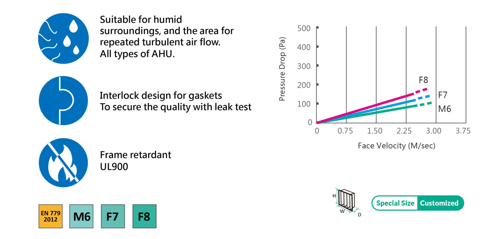 Efficiency: M6~F8 (EN779) / MERV11~14 (ASHRAE 52.2)