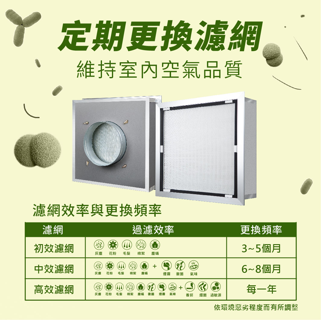 • 過濾效率:過濾效率達95-99.99%,改善室內空氣品質。