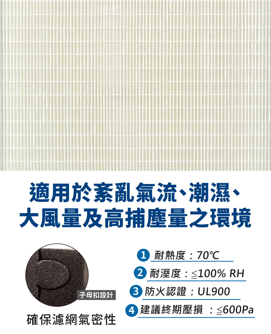 ✔ 適用於紊亂氣流、潮濕、大風量及高捕塵量之環境