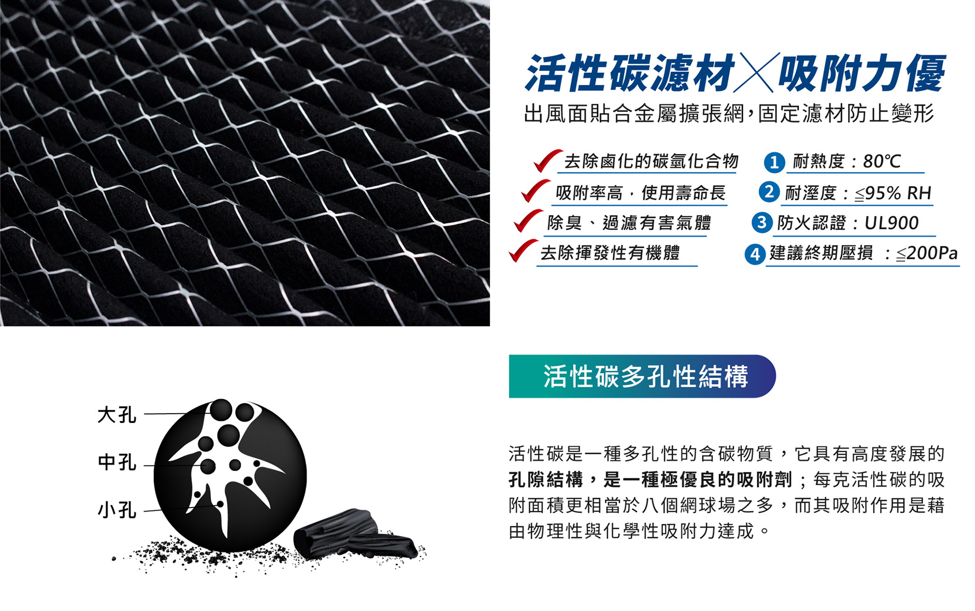 ✔ 吸附效率高、使用壽命長