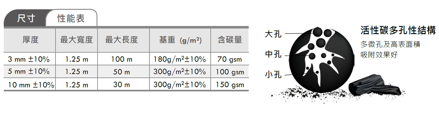 活性碳不織布過濾材料是由具有自我支撐性的聚酯纖維(PET fabric)及高效率粉狀活性碳製作而成。
